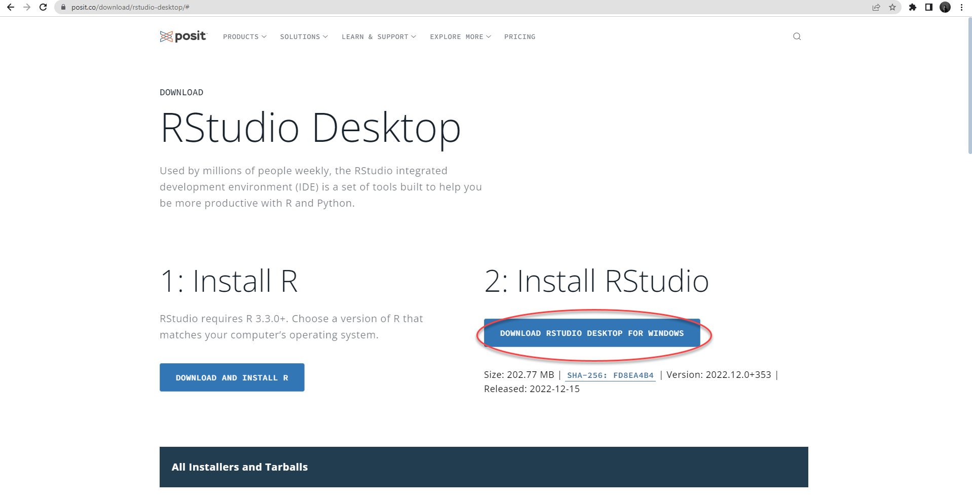 Langkah pertama, download installer R Studio versi terbaru atau jika menginginkan R Studio sebelumnya bisa pilih all installer.