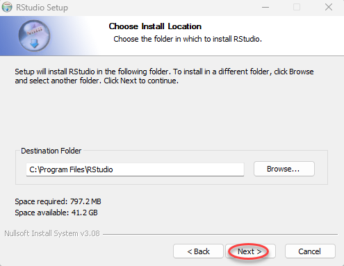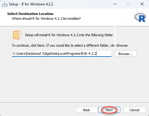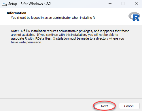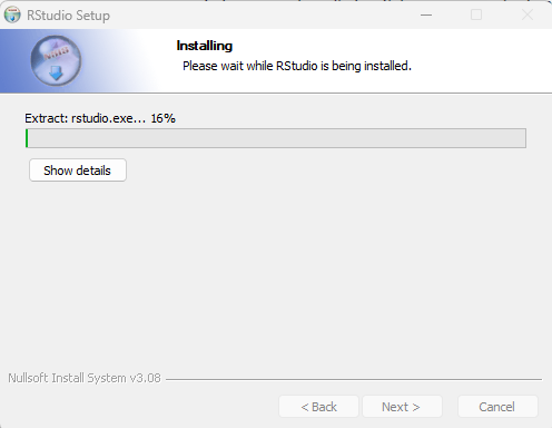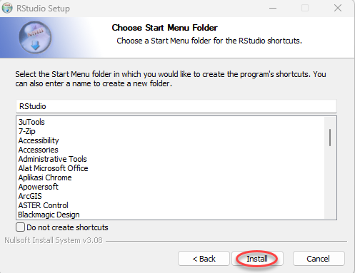Setelah installer terunduh, buka file dan jalankan installer R Studio kemudian pilih Next.
