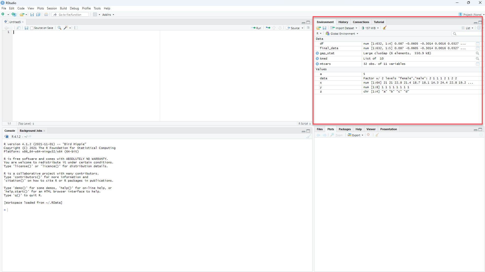 Environment berfungsi untuk menampilkan daftar nilai yang sedang aktif tersimpan dalam memori (RAM).