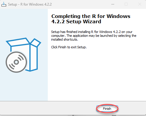 Selanjutnya, tunggu beberapa saat untuk proses instalasi dan pilih Finish untuk menyelesaikan tahap instalasi R.