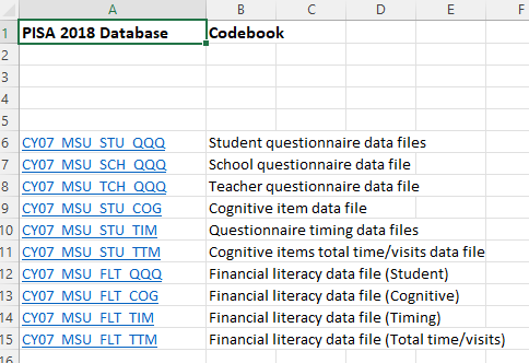 OECD juga menyediakan dokumentasi data yang berupa kode buku (code book).Terdapat beberapa kode buku dalam PISA, diantaranya kode buku kuisioner untuk siswa, kuisioner untuk sekolah, kuisioner untuk guru, dan lebih lengkapnya termuat dalam gambar berikut.