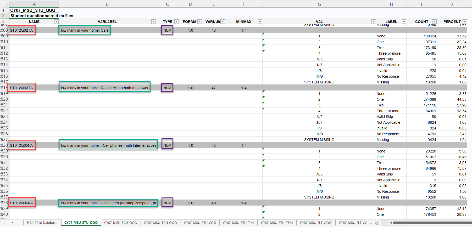 Di bawah ini merupakan contoh kode buku kuisioner untuk siswa pada PISA 2018.
